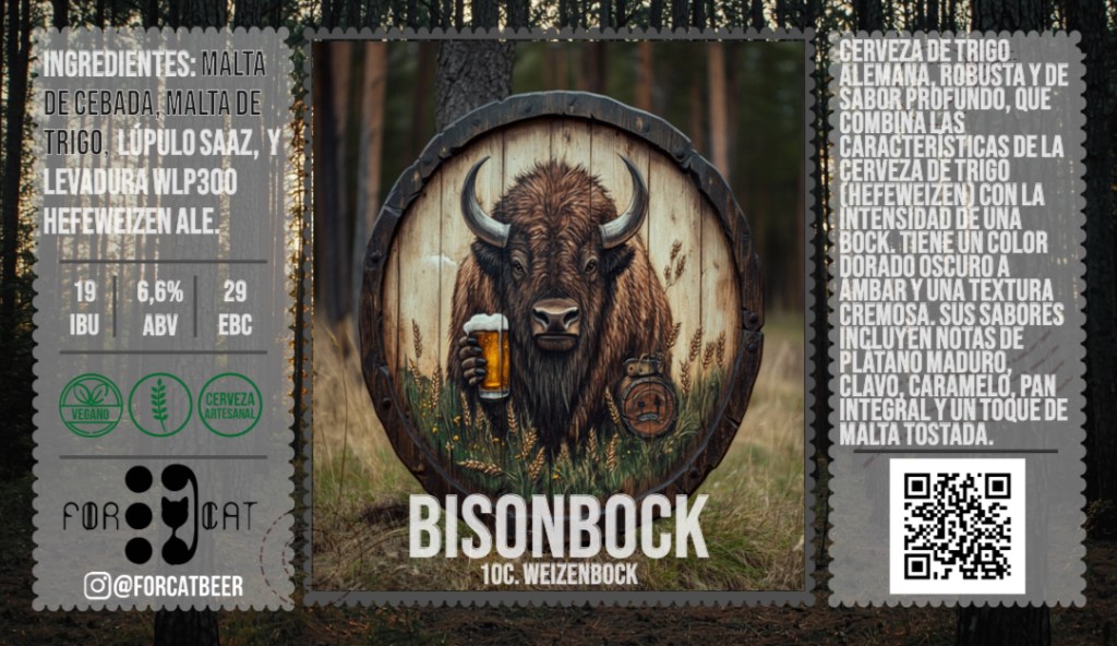 Descripción: Cerveza de trigo alemana, robusta y de sabor profundo, que combina las características de la cerveza de trigo (hefeweizen) con la intensidad de una bock. Tiene un color dorado oscuro a ámbar y una textura cremosa. Sus sabores incluyen notas de plátano maduro, clavo, caramelo, pan integral y un toque de malta tostada. El cuerpo es más denso que el de otras cervezas de trigo, y su final es ligeramente dulce y alcohólico, con una suavidad que equilibra la mayor graduación. Es ideal para disfrutar en épocas frías.